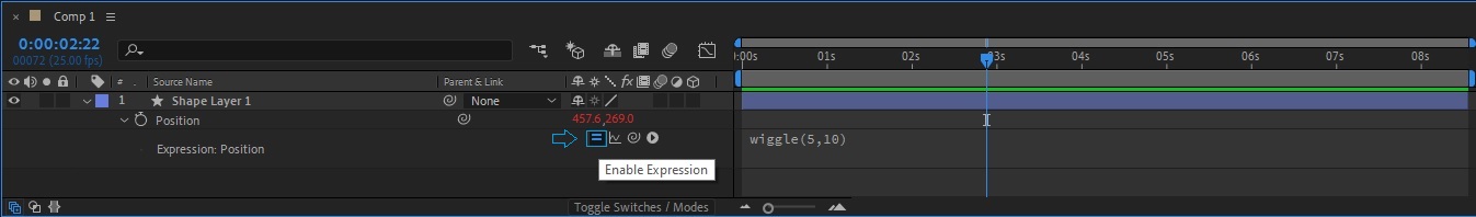 بعضی مواقع در هنگام کدنویسی برای آزمایش اکسپرشن در افترافکت after effects نیاز هست تا اون رو غیرفعال کنیم تا بهتر متوجه تاثیرش بشیم برای اینکار نیاز به حذف کد نداریم و فقط کافیه از گزینه Enable Expression استفاده کنیم