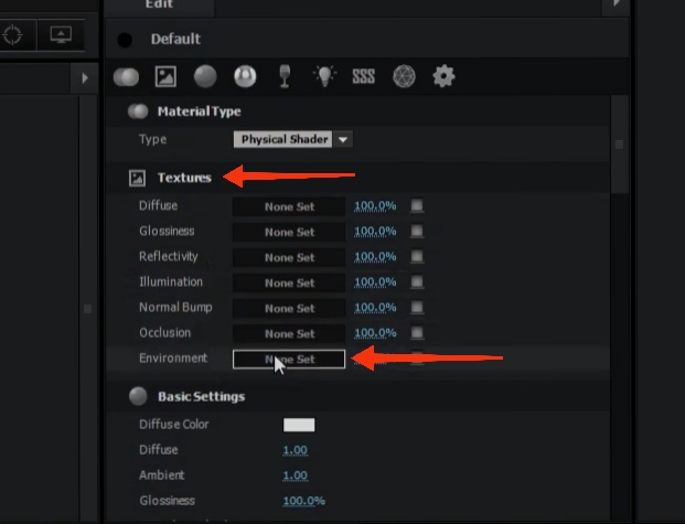اما یه سختی کوچیکی که وجود داره اینه که برای هر متریالی که اعمال میکنین باید این پروسه رو انجام بدین و برای راحتی کار، بهتره که گزینه ی رو به روی environment که فعال شده و تصویر توش قرار داره(فلش قرمز پایین توی تصویر) رو کلیک راست کنید و کپی برنید و برای environment بقیه ی متریال ها جایگذاریش کنید.