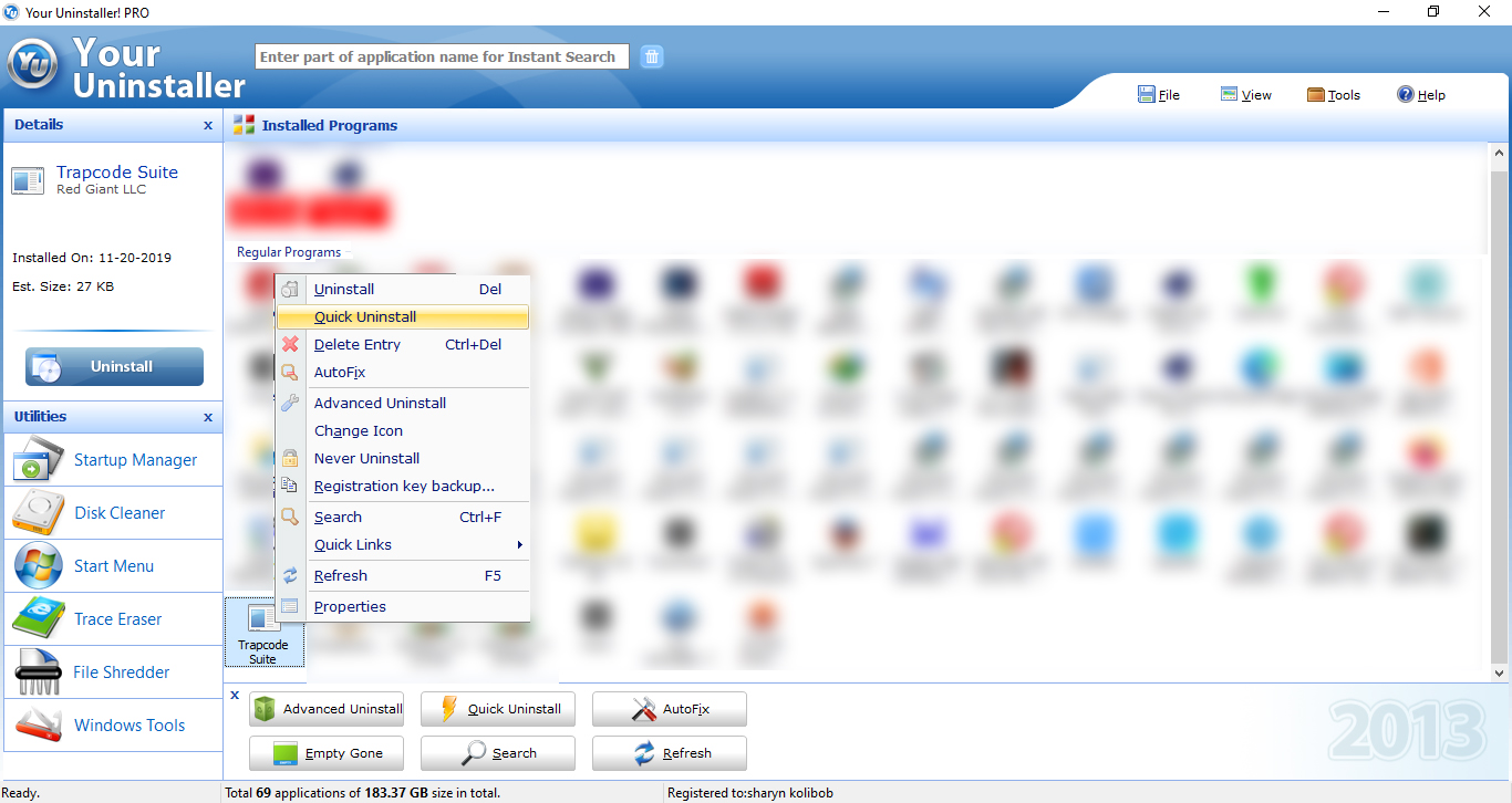 برنامه your Uninstaller رو دانلود کن و با این برنامه Trapcode رو حذف کن
