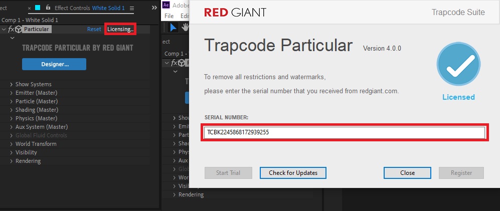 مشکل خطوط قرمز در پلاگین Trapcode Particular